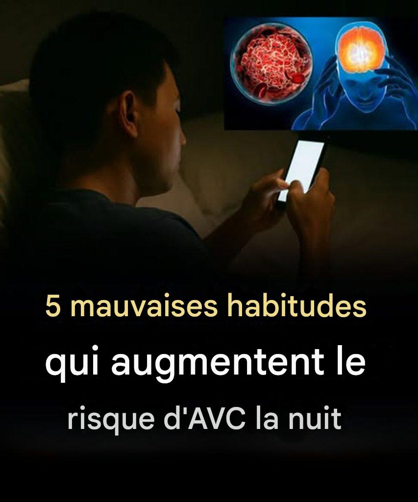 L'AVC, une maladie grave, survient lorsque l'apport sanguin au cerveau est interrompu. Bien que certains facteurs de risque, comme l'âge et la génétique, soient incontrôlables, certaines habitudes peuvent augmenter le risque d'AVC, notamment la nuit. Voici cinq mauvaises habitudes qui pourraient augmenter votre risque :