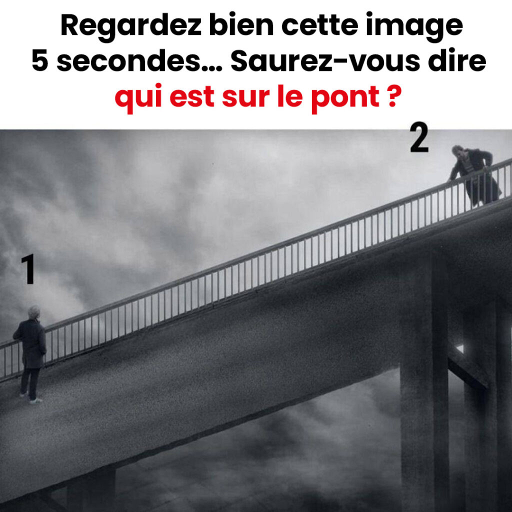 Vous avez cinq petites secondes… pas une de plus. Prêt·e ? Regardez attentivement l’image. Plusieurs personnages s’y trouvent, mais une seule personne est réellement sur le pont. Vous pensez avoir trouvé ? Attendez avant de faire défiler : ce défi visuel est plus rusé qu’il n’y paraît…