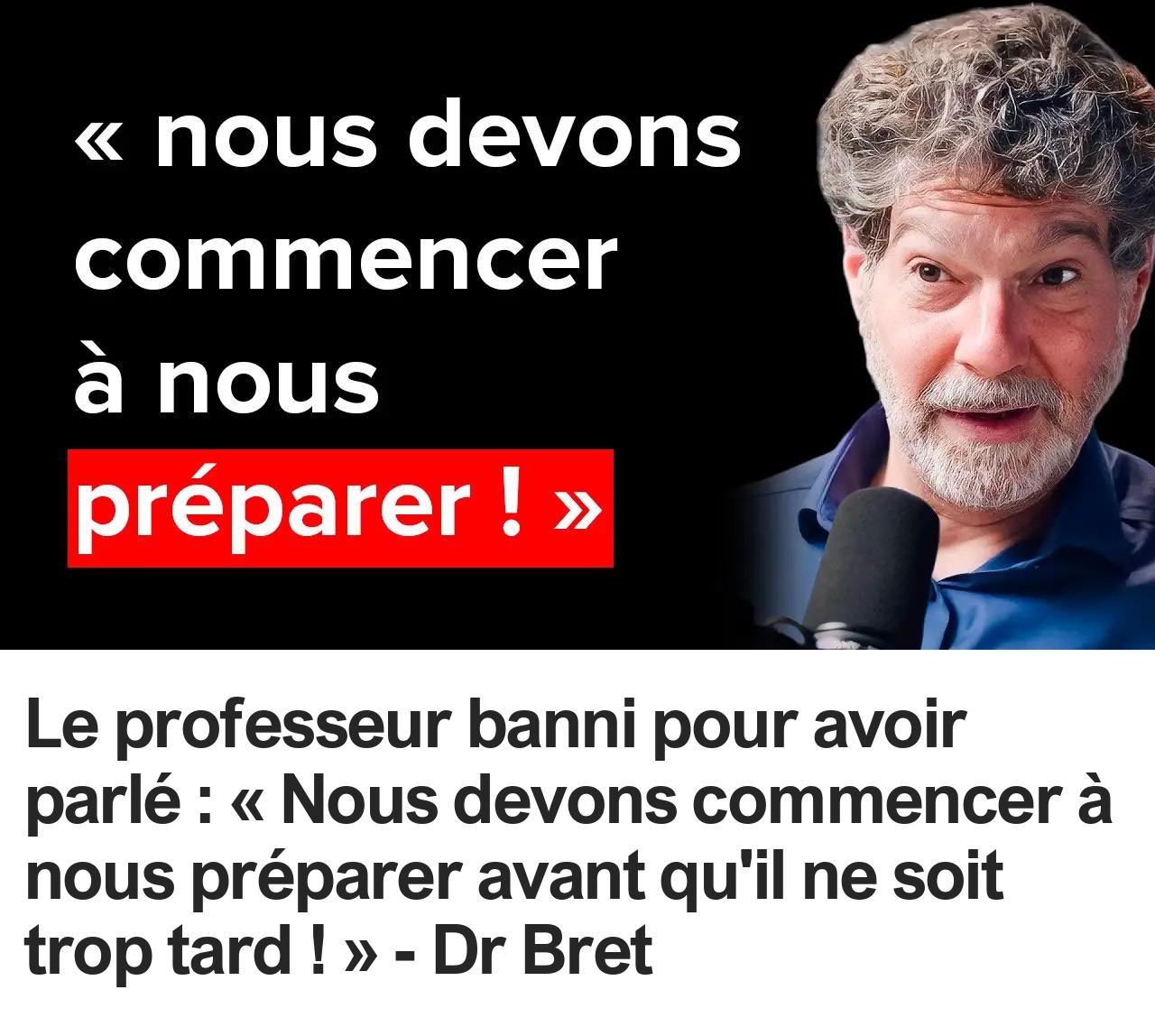 Le professeur banni pour avoir parlé : « Nous devons commencer à nous préparer avant qu’il ne soit trop tard ! » – Dr Bret