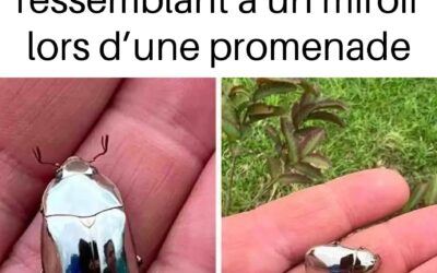 Un homme découvre un scarabée argenté ressemblant à un miroir lors d’une promenade