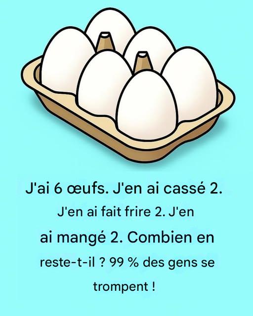 « J'ai six œufs. J'en ai cassé deux, j'en ai fait frire deux et j'en ai mangé deux. Combien en reste-t-il ? »