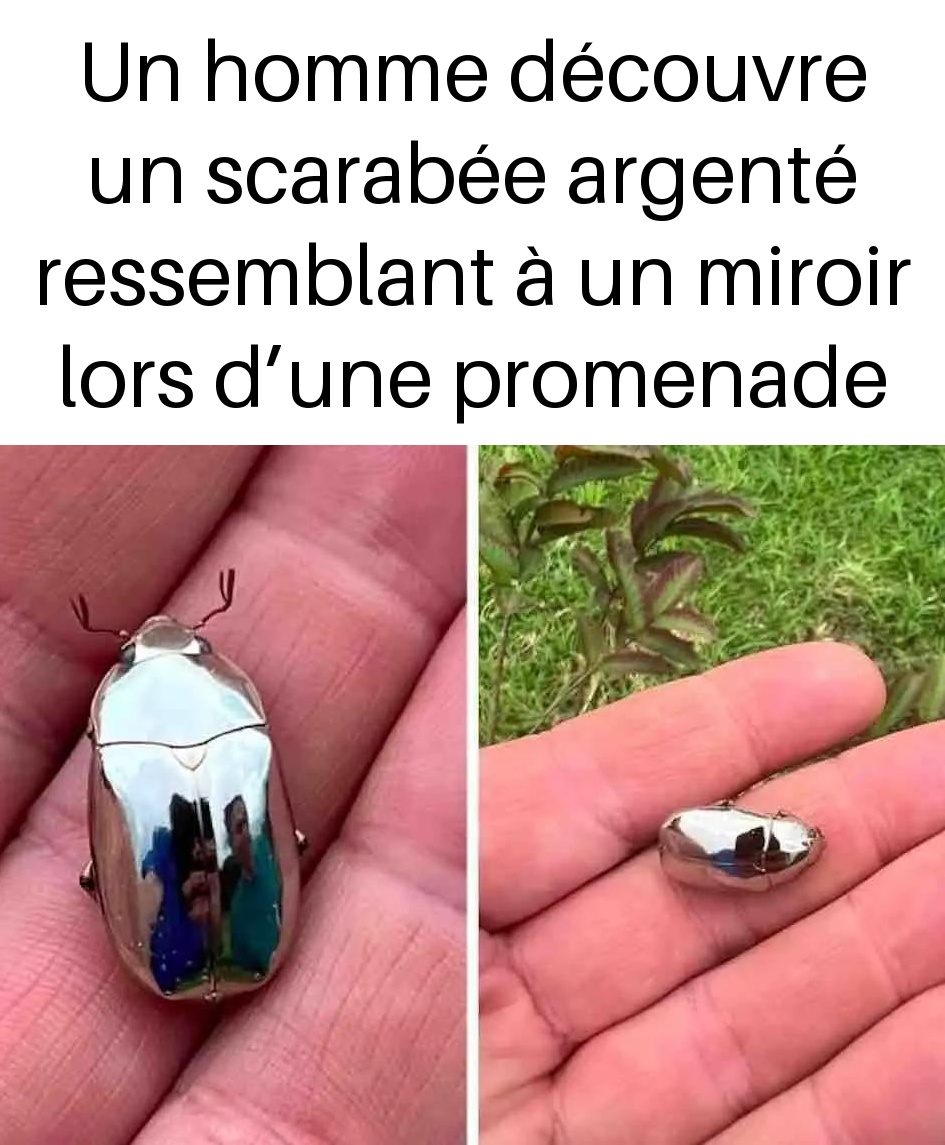 Un homme découvre un scarabée argenté ressemblant à un miroir lors d’une promenade